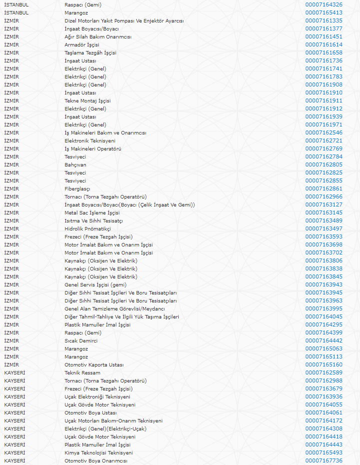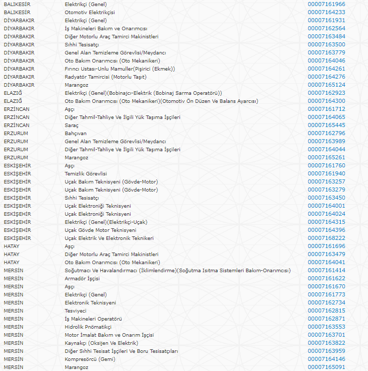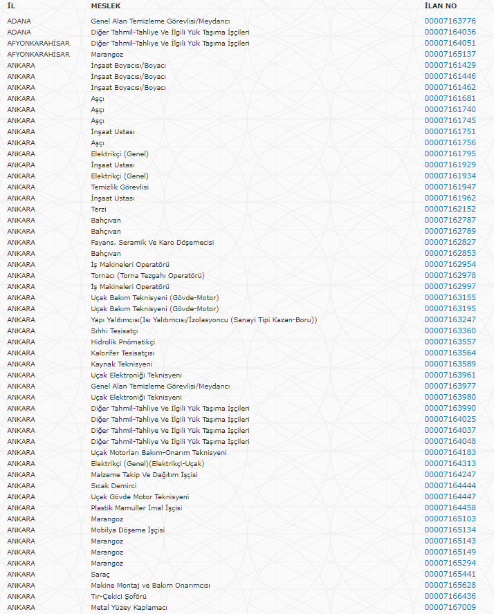 Adaylar başvurularını İŞKUR üzerinden online yapabilecek. Aşağıda belirtilen ilan numaraları girilerek istenen iş ilanının başvuru şartlarına bakıp başvurularınızı yapabilirsiniz. Aktif olarak başllayan başvurularda son gün 25 Kasım 2022 tarihi.