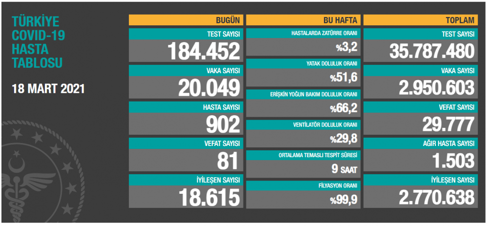 Son dakika haberi: Sağlık Bakanlığı 18 Mart 2021 tarihinin koronavirüs tablosunu az önce yayımladı. Bakanlık Covid 19 sayfasından yayımlanan duyuru yazımızda.