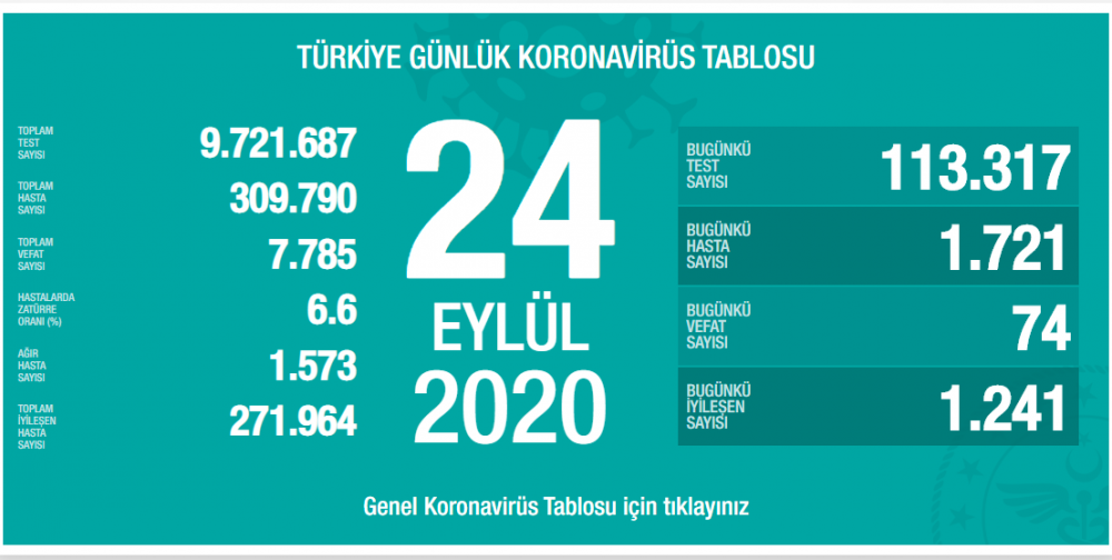 Az Önce Açıklandı: İşte Türkiye 24 Eylül Coronavirüs Salgını Tablosu Vaka Sayısı