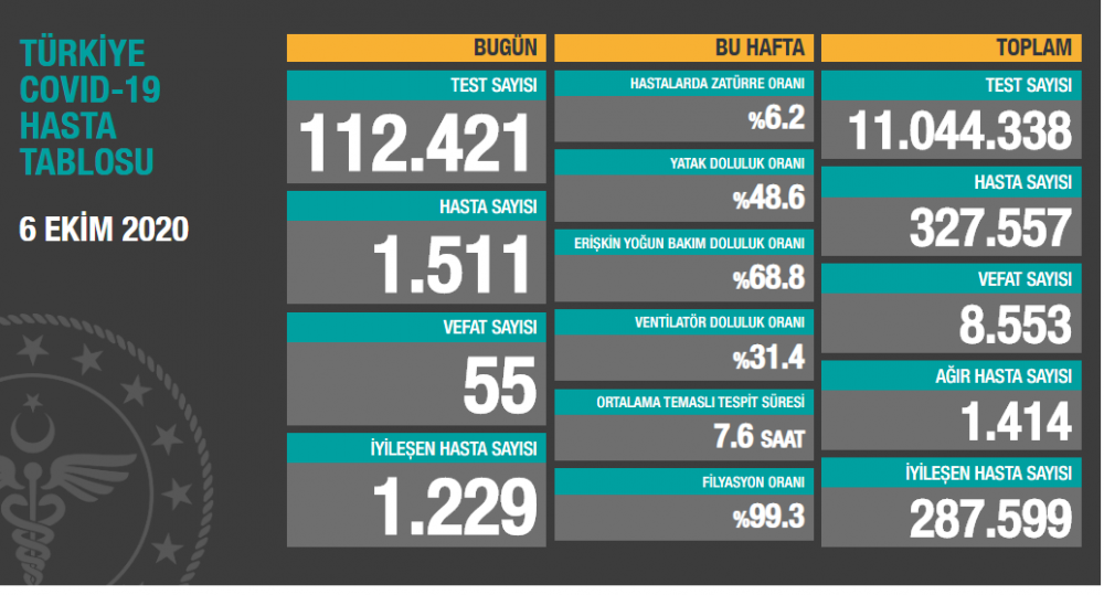 Sağlık Bakanlığı tarafından yayımlanan koronavirüs verileri şu şekilde: