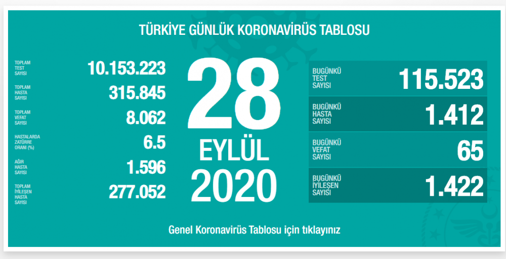 Önceki günün corona tablosu için TIKLAYIN