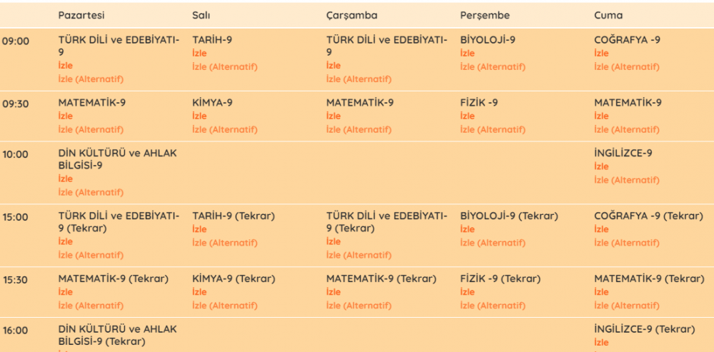 9. SINIF EBA HAFTALIK DERS PROGRAMI SAATLERİ