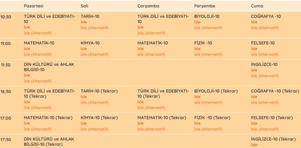 10. SINIF EBA HAFTALIK DERS PROGRAMI SAATLERİ