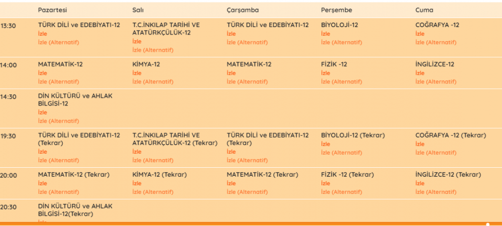 12. SINIF EBA TV HAFTALIK DERS PROGRAMI SAATLERİ