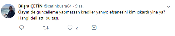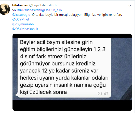 Sosyal medya platformu Twitter üzerinden bazı adaylar, ÖSYM’de hala lise öğrencisi olarak göründüğünü ve üniversite eğitim bilgilerinin girilmesiğine yer verdi. ÖSYM üzerinden güncelleme yapan öğrencilerin zamanında yetiştiğini düşünürken, güncelleme yapmayanları ise KYK burs başvurusunun iptal olması korkusu sardı. Bir kısım ise söz konusu iddiaya inanmadı ve “KYK burs başvurusu yanacak efsanesi kim çıkardı?” diyerek bu konu hakkındaki tepkisini dile getirdi. Burs başvurusunun iptal olduğunu da söyleyenlerin sayısı çoğunlukta.