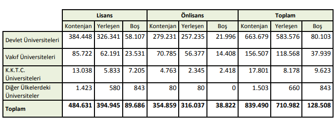 YKS Yerleştirme En Düşük Puanları ve Boş Kontenjanlar Açıklandı