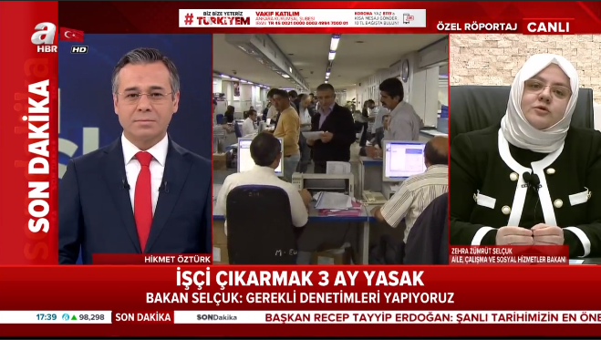 Ahaber canlı yayınına katılan Aile, Çalışma ve Sosyal Hizmetler Bakanı Zehra Zümrüt Selçuk, ücretsiz izin verilen vatandaşlara ayda verilecek 1177 TL maaş için başvuruların başladığını söyledi. Bakan Selçuk, yaptığı açıklamada şu ifadeleri kullandı: