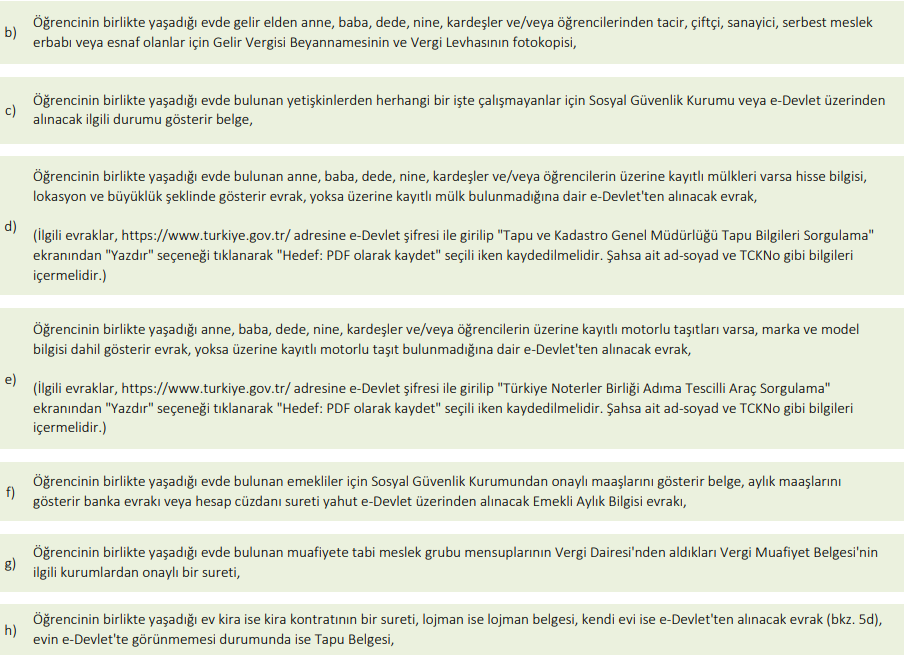 Okuyan kardeşi varsa okullarından veya e-Devlet üzerinden alacakları öğrenci belgeleri,