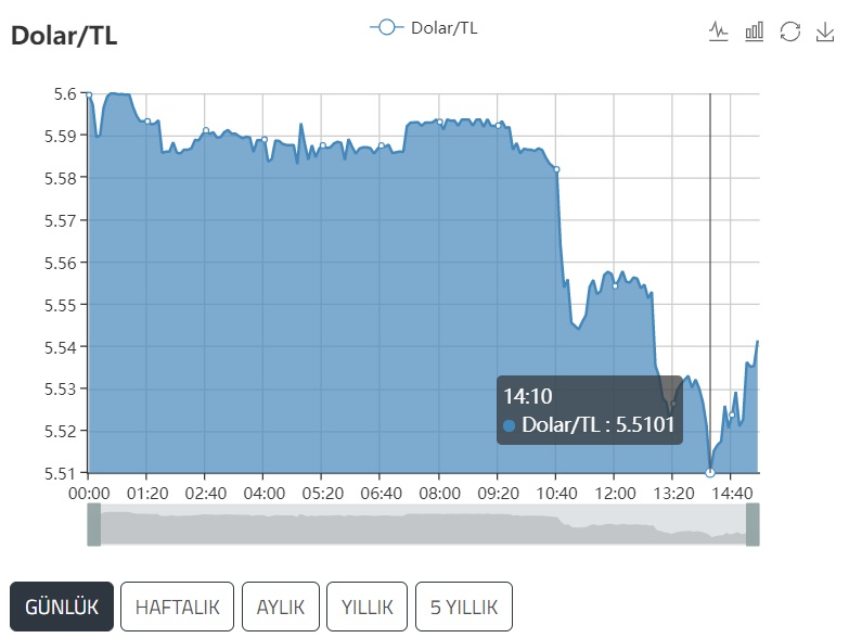 Brunson krizinin ardından dolar kuru sürekli olarak yükselişe geçmiş ve 7 TL seviyesini bile geçmişti. Ancak yapılan müdahaleler, destekler, yatırımlar ve Brunson 'un serbest bırakılması doların ateşini düşürdü. Geçtiğimiz hafta 5,70 TL seviyesine kadar düişen dolar kuru, Salı günü Cumhurbaşkanı Erdoğan ile Bahçeli arasındaki gerilim sonrası yine yükselmiş ve 5,85 seviyesine kadar çıkmıştı.