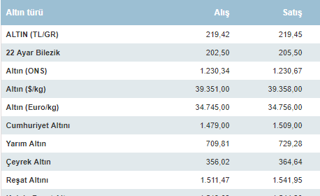 Altın fiyatları ise güne düşüşle başladı. Çeyrek altın, Cumhuriyet altını ve gram altın fiyatları şu şekilde;
