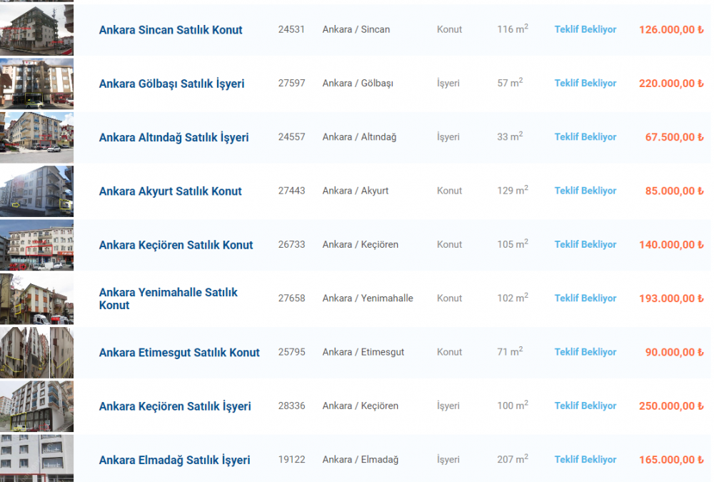 Satışta olan konut ile işyerlerine baktığımızda ise yine uygun fiyatların çıktığı görüldü. İşte satışta olan konutlar ile işyerlerinden bazıları