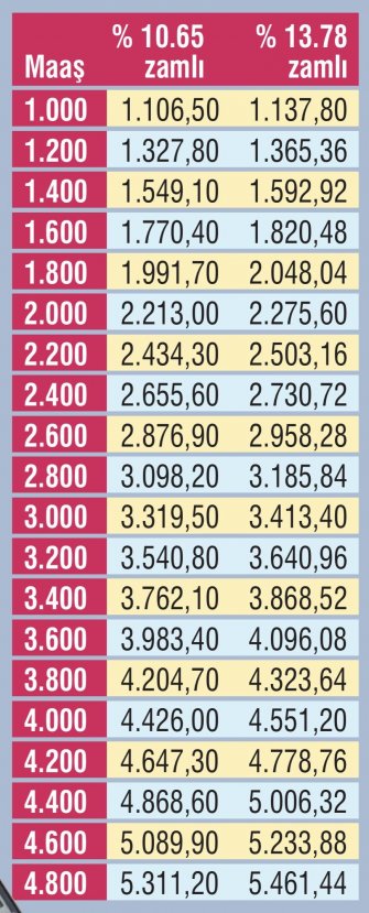 Öte yandan Türkiye Cumhuriyeti Merkez Bankası 'nın enflasyon tahmini olan yüzde 13.78 'lik oran maaşları 140 ile 674 lira arasında yükseltecek.