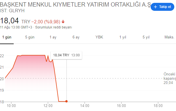Sabah yüzde 10 karla başlayan Güler , öğle saatlerinde aşı açıklamasının gelmesi ile birlikte tavanı bozdu ve kısa süre içinde yüzde -10 kayba geriledi. Sabah saatlerinde 22,04 seviyesinde olan GLRYH hissesi, saat 12.35 'te ciddi bir düşüş yaşadı ve 18,04 'e kadar geriledi.
