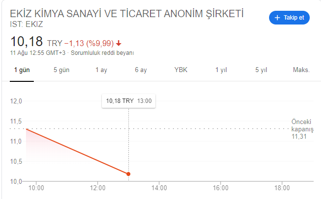 Ekiz hissesinde de bugün olağandışı hareketlilik yaşandı. Sabah 9.55 seansına yüzde 6 karla başlayan Ekiz , öğle seansında tabana gitti. Sabah 12 seviyesine gelen Ekiz, 12.55 seansında yaşadığı yüzde 16 'lık düşüşle 10,18 seviyesine geriledi.