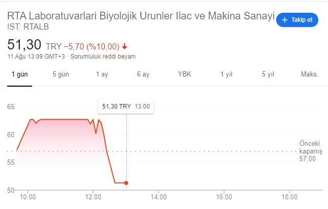 Güler hissesindeki düşüş RTA 'da da yaşandı. Sabah saatlerinde tavana giden ve tavanda yüksek hacimle yüksek alıcı ile devam eden RTA, aşı açıklaması sonrası hızlı şekilde düştü.