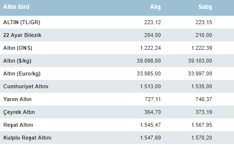 Geçtiğimiz haftalarda zirveleri gören bir diğer ekonomi aracı altın, son günlerde düşüşe geçti. Gram altın , çeyrek altın ve cumhhuriyet ile diğer altın fiyatları tablosu şu şekilde;