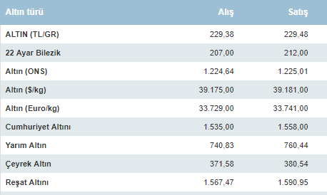 Şu saatlerde kapalı çarşıda çeyrek altın, gram altın, cumhuriyet altını fiyatları şu şekilde;