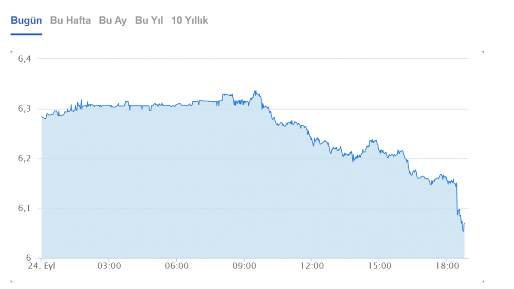 Dolar/TL'de teknik açıdan 6.19 destek konumu olarak kabul ediliyordu. Uzmanlar bu seviyenin kırılması halinde düşüşün ivmelenebileceğini belirtmiş, 6.41'in ise direnç olarak izleneceğini belirtmişti.
