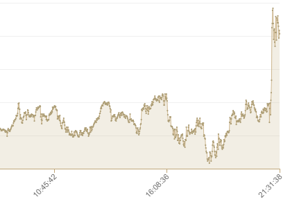 Gelen son bilgilere göre dolar kuru, gündüz 4.23 TL seviyesinde seyrederken az önce hızlı şekilde yükselerek 7.44 TL seviyesine kadar çıktı. daha sonra bir miktar düşen dolar 7.40 TL 'de seyrediyor. İşte dolar kurundaki değişimin grafiği:
