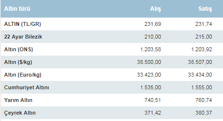 Gram altın, çeyrek altın ve cumhuriyet altını fiyatları ise biraz arttı. Son rakamlar şu şekilde;