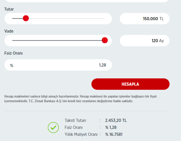 Kredi hesaplama adresi yukarıdadır. Linki kopyalayın ve yeni sekmede açın.