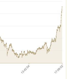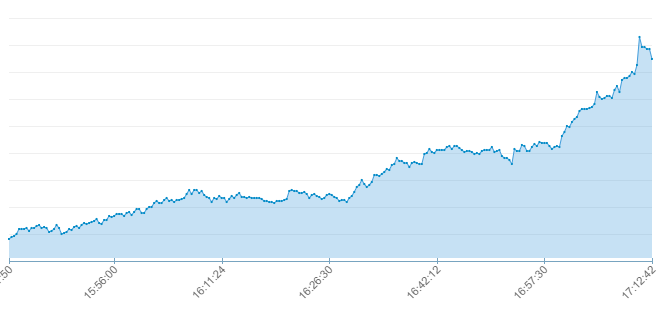 Piyasalardan alınan sondakika verilerine göre gram altın hızlı bir yükseliş içine girdi. Saat 16,00 sularında 391 TL seviyesinde olan gram altın , hızlı yükselişle 396 TL seviyesini gördü. İşte altında son dakikalardaki değişim grafiği: