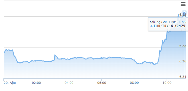 Dolar ile paralel olarak Euro kuru da TL karşısında değer kazanmaya başladı. Piyasalardan alınan bilgilere göre euro kuru 6.32 TL seviyesinde işlem görüyor.