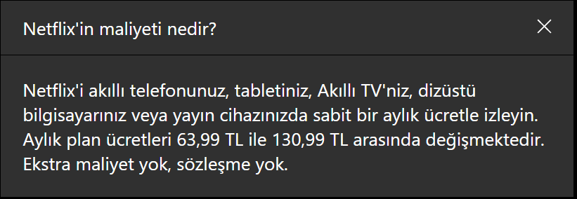 Son dönemlerde kar etmediği iddia edilen Netflix, Türkiye fiyatlarına Eylül ayında da zam getirmiş ve en düşük paket olan Temel plan 44 lira 99 kuruştan 63 lira 99 kuruşa yükseltildi.