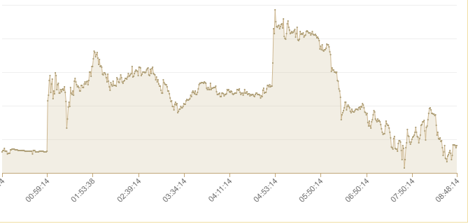 Gece 4.53 sularında gram altında yaşanan yükseliş bir anda hızlandı. Asya piyasalarının açılması sonrası 333 TL seviyesine kadar tırmanan gram altın , bu dakikalarda ani bir yükselişle 339 TL seviyesini gördü. İşte yaşanan anlık yükselişin grafiği: