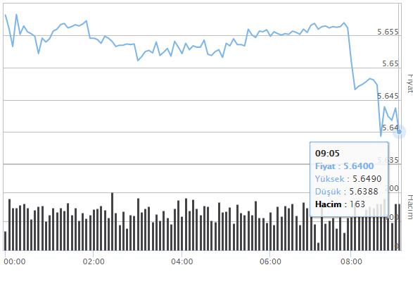 İşte euro kurunda gün içindeki değişim grafiği >>