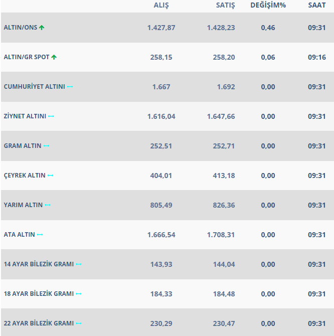 Gram altın şu sıralar 258 TL seviyesinde seyrediyor. İşte diğer altın cinslerinde son durum.