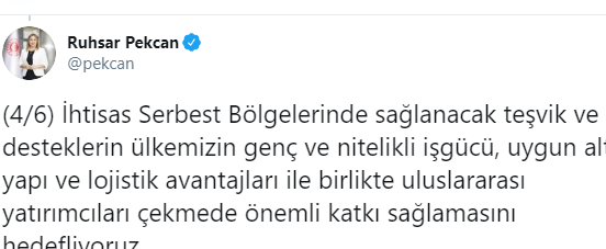 Konuya dair sosyal medya hesabından değerlendirmelerde bulunan Ticaret Bakanı Ruhsar Pekcan'ın açıklamalarında şunlar görüldü: