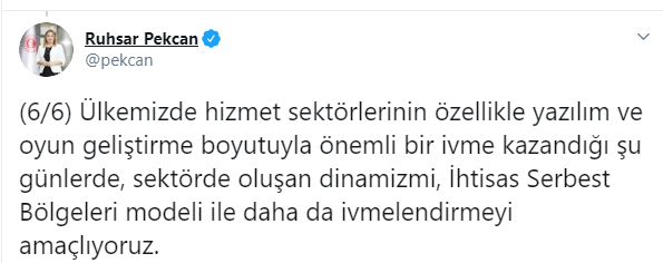 İhtisas Serbest Bölgelerinde sağlanacak teşvik ve desteklerin ülkemizin genç ve nitelikli işgücü, uygun alt yapı ve lojistik avantajları ile birlikte uluslararası yatırımcıları çekmede önemli katkı sağlamasını hedefliyoruz.Bürokrasinin azaltıldığı, tek durak hizmet sunumu imkânları ile donatılacak ihtisas serbest bölgelerimizin hedeflediği ilk sektörü bilişim sektörü olarak belirledik ve bu amaçla İstanbul İhtisas Serbest Bölgesini kurduk.Ülkemizde hizmet sektörlerinin özellikle yazılım ve oyun geliştirme boyutuyla önemli bir ivme kazandığı şu günlerde, sektörde oluşan dinamizmi, İhtisas Serbest Bölgeleri modeli ile daha da ivmelendirmeyi amaçlıyoruz.