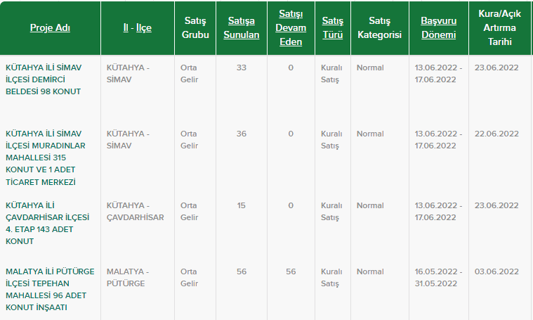 Kütahya ve Malatya’da konutlar satışa sunulacaktır.