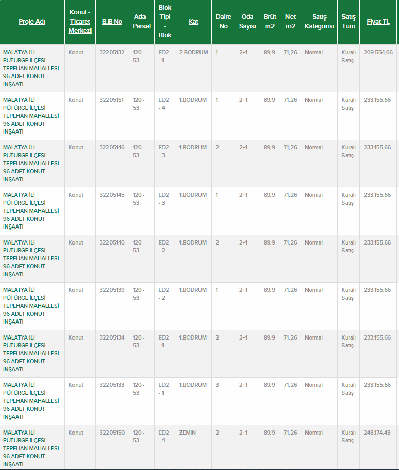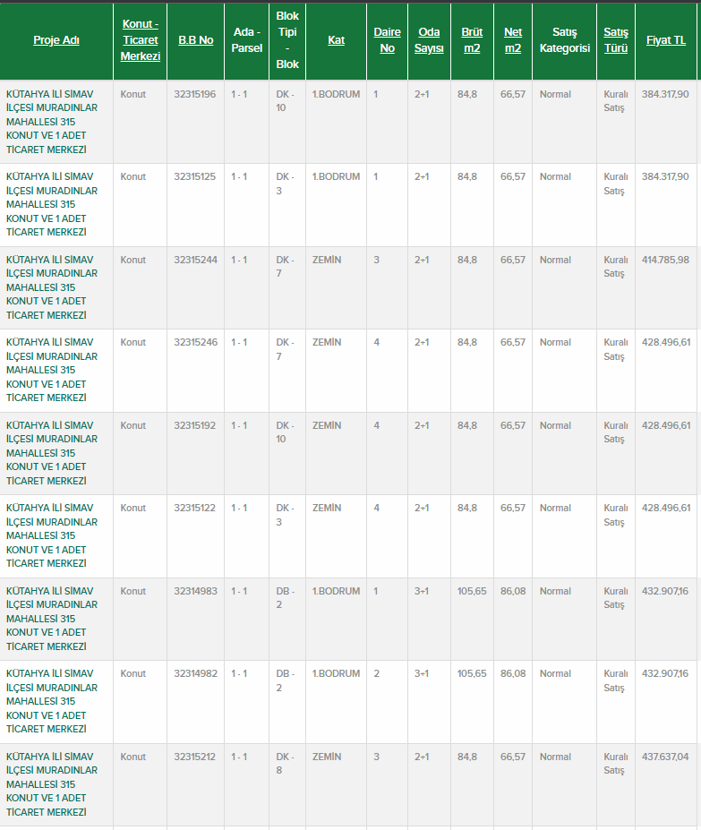 Aşağıda satışı yapılacak konutlardan bazılarının listesi yer alıyor. Satış hakkındaki tüm detaylara ve ilanlara bakmak için yazının sonundaki bağlantıya tıklayabilirsiniz.