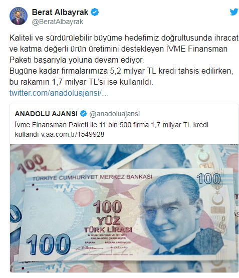Hazine ve Maliye Bakanı Berat Albayrak konuyla ilgili Twitter'dan açıklamada bulundu.