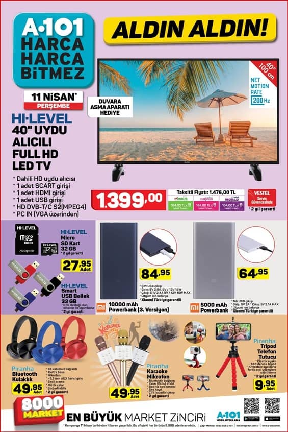 A101 marketler 11 Nisan günü birçok üründe indirime gidiyor. Telefon, televizyon, Powerbank, sebze ve meyvelerde yapılan indirimlerin detayları ve indirimli ürünler kataloğu haberimizde.