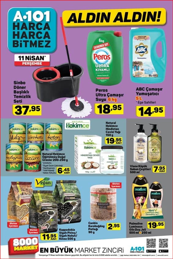 Perakende satış sektörünün öncü kuruluşlarından olan, Türkiye genelinde bulunan binlerce maazası ile milyonlarca kişinin tercih nedeni olan A101 marketler, 11 Nisan 2019 günü birçok üründe ciddi indirimlere giriyor.