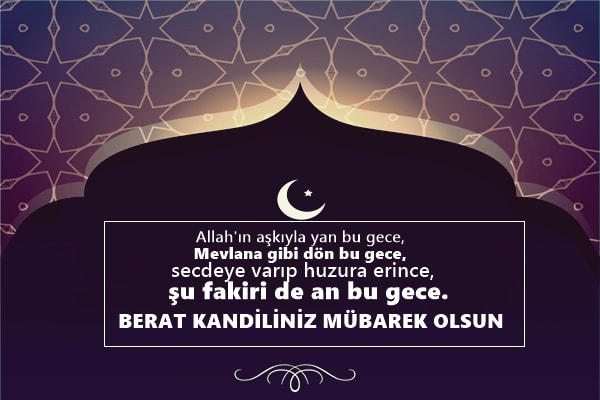 Sizin ve sevdiklerinizin edeceği tüm duaların Allah katında kabul olacağı bir kandil olmasını niyaz ederm. Berat Kandiliniz mübarek olsun.