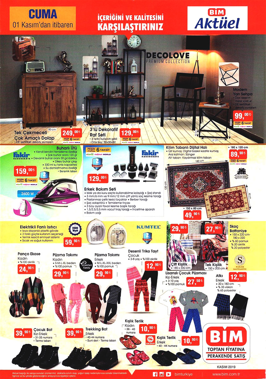 BİM 1 Kasım 2019 İndirimli Ürünler Kataloğu