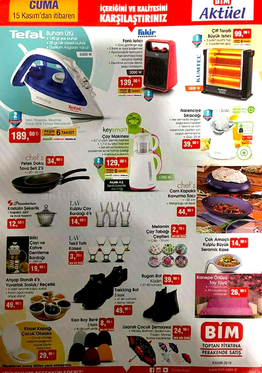 BİM 15 Kasım 2019 Cuma günü birçok üründe indirime gideceğini duyurdu. Elektronik ürünler, çocuk araç ve gereçleri, ütü, ısıtıcı ve birçok üründeki indirimler haberimizde.