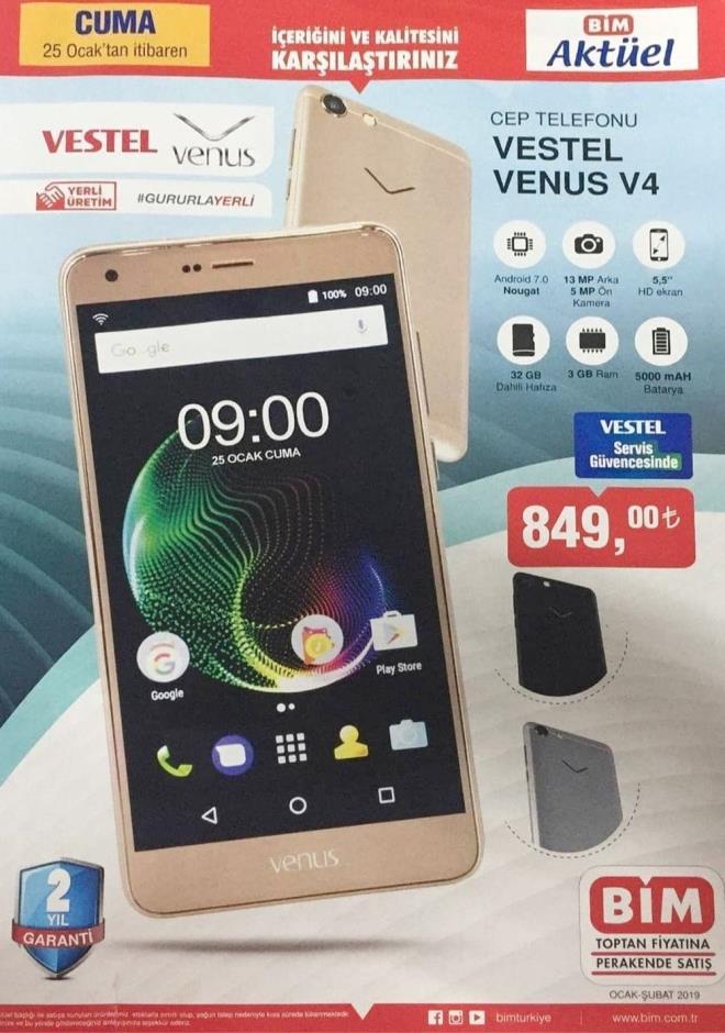 BİM ise Vestel Venus Marka cep telefonunu 849 TL ile satışa sunuyor.