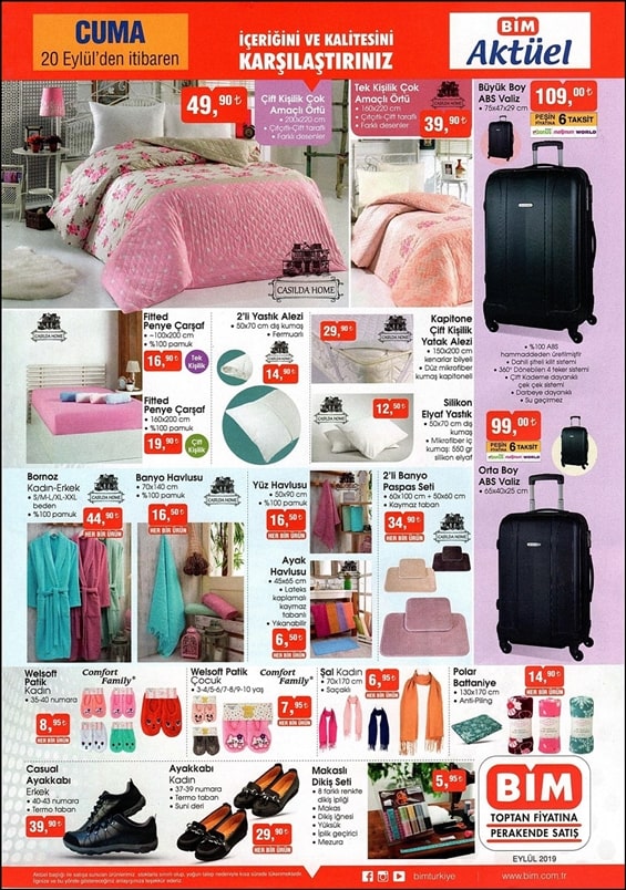 BİM 20 Eylül 2019 aktüel ürünler kataloğu yayımlandı. Katalogda elektrikli bisikletten, cep telefonuna, ütüden, ev tekstil ürünlerine kadar bir çok ürünün indirime gireceği görülüyor. Sınırlı stokla satışa sunulacak ürünlerin 20 Eylül 2019 tarihi itibariyle müşterilerle buluşacağı bildirildi.