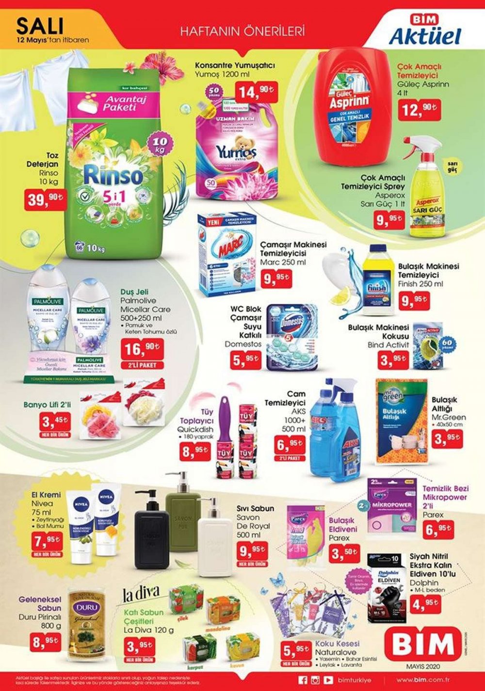 Bim 6 Mayıs 2020 Çarşamba indirimli ürünler kataloğu şu şekilde: