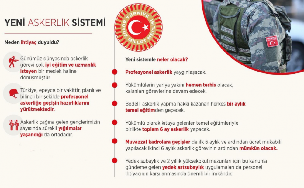 Bu açıklama sonrası yeni askerlik kanunun kısa sürede yasalaşması ve yürürlüğe girmesi bekleniyor.