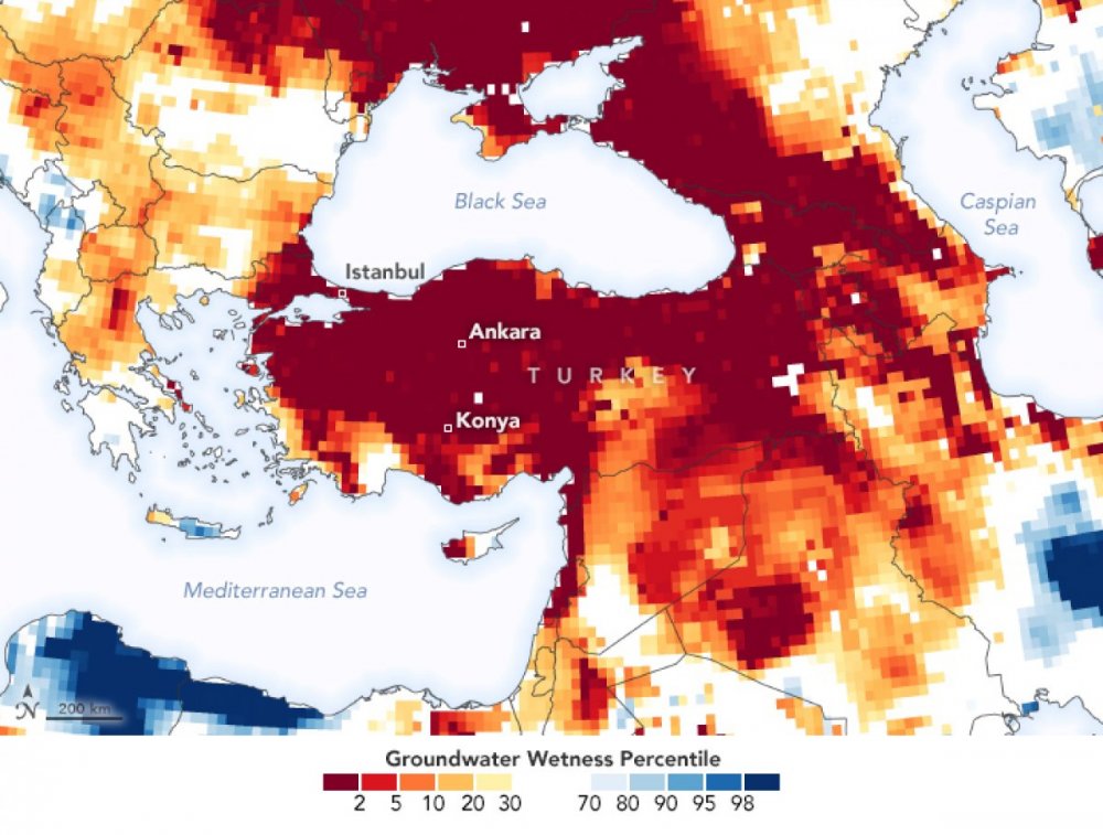 NASA resmi sosyal medya hesabı üzerinden bir son dakika açıklaması geldi. Yapılan paylaşımda Türkiye'nin yeraltındaki sularının durumu bildirildi. Amerikan Havacılık ve Uzay Dairesi'nden (NASA) yapılan Türkiye paylaşımına baktığımızda drumun iç açıcı olmadığı görüldü.