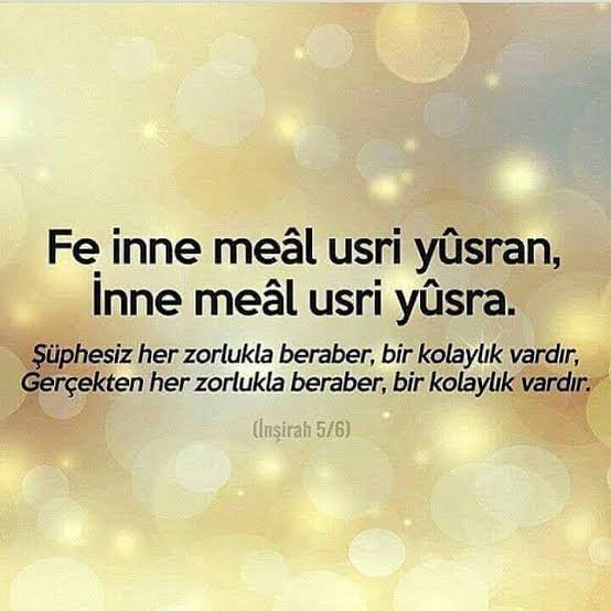 "Şüphesiz güçlükle beraber bir kolaylık vardır. Gerçekten, güçlükle beraber bir kolaylık vardır."