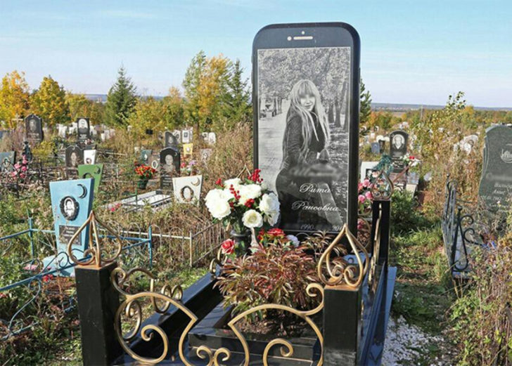 Edinilen bilgilere göre, Rusya' nın Ufa kentinde sıra dışı bir mezar taşı yapıldı. Kentin Güney bölgesined bulunan Mezarlıkta görülen manzara herkesi şaşkına çevirdi. 2 yaşında olduğu öğrenilen Rita Raisovna isimli genç bir kızın mezarı üzerine, hayranı olduğu ve çok sevdiği iPhone 6 marka telefonu şeklinde bir mezar taşı dikildi. Siyah granit ile hazırlanan bu mezar taşının üzerindeki ekran kısmına da ölen kızın telefonuyla çektirdiği bir fotoğrafı, adı, doğum tarihi ve ölüm yıl dönümü gibi temel bilgilere yer verildi.