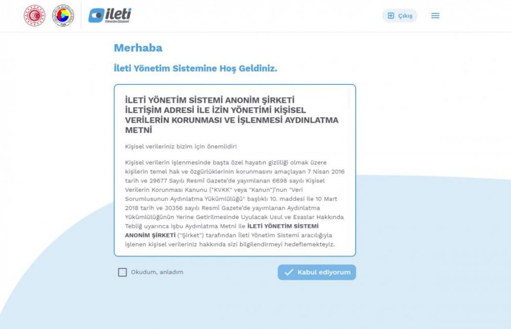 Daha sonra İYS aydınlatma metnini okuyun ve kabul ediyorum seçeneğine tıklayın.