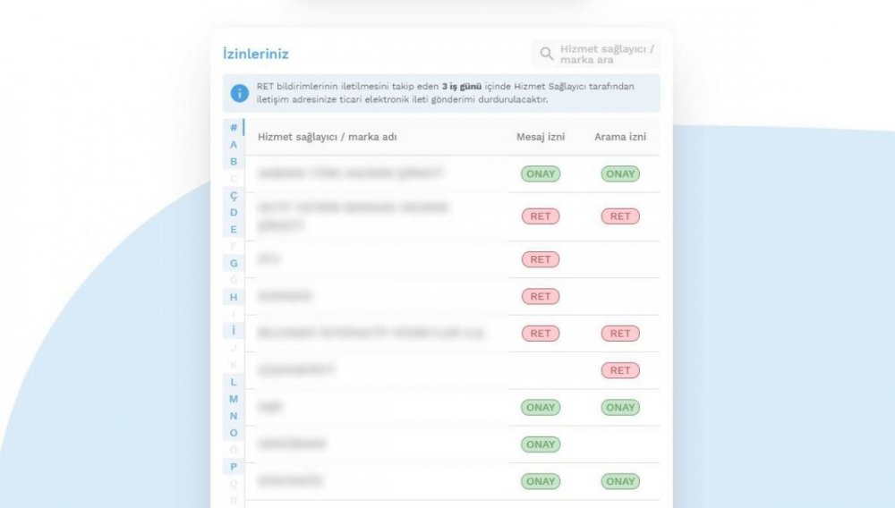 İYS adı verilen yeni sistemde mesaj ve çağrı engelleme yapılıyor. Kurumları seçebilir ya da kurumun mesaj gönderme veya arama iznini ayrı şekilde düzenleyıp sadece istediğiniz şekilde bilgi alabileceksiniz. Bunun için aşağıdaki adımları izlemeniz gerekmektedir: